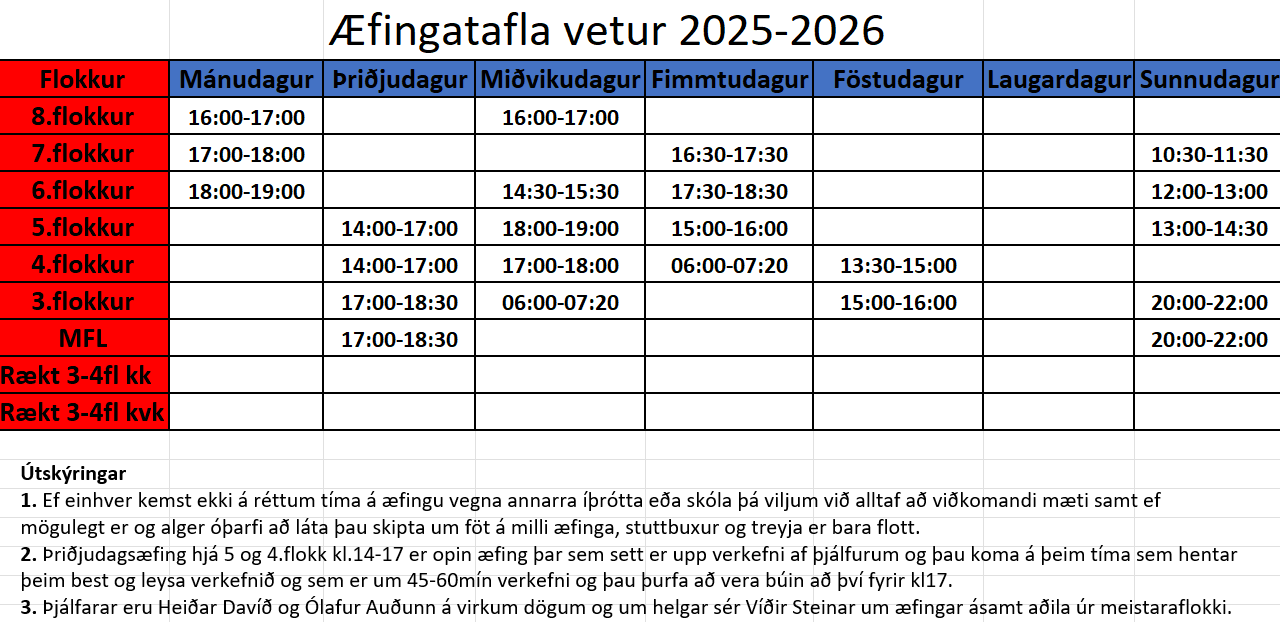 Vetraræfingatafla 2025-2026