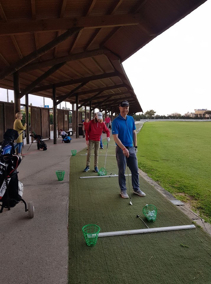 Æfingaferðin fer vel af stað og er mikil gleði hjá mannskapnum í bland við einbeitingu og vilja til að bæta sig og æfa. Föstudag, laugardag og sunnudag var spilað 18 holur og æft í 3-4klst, deginum lauk um kl.18. Yngstu krakkarnir fengu svo frí á sunnudeginum. Á mánudeginum var léttur dagur, 3-4 manna texas scramble mót án forgjafar þar sem 3 lið urðu jöfn á 7 undir pari. Á þriðjudag hefst svo tveggja daga mót, leikið 36 holur, með Golfklúbbi Selfoss. Fullorðnir og krakkar keppa í punktakeppni með forgjöf og höggleik. Alls um 70 manns í mótinu. Krakkarnir hafa staðið sig mjög vel og eru klúbbnum til sóma í framkomu og viðhorfi. Aðstæður hér á Novo Sancti Petri eru frábærar. Báðir vellirnir eru krefjandi, skemmtilegir og í frábæru standi. Hótelið flott og maturinn ekki til að skemma fyrir.