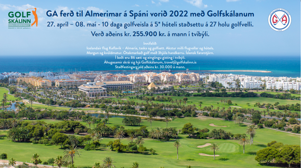 Golfskálinn verður með GA ferð til Almerimar á Spáni vorið 2022 frá 27. apríl - 8. maí.